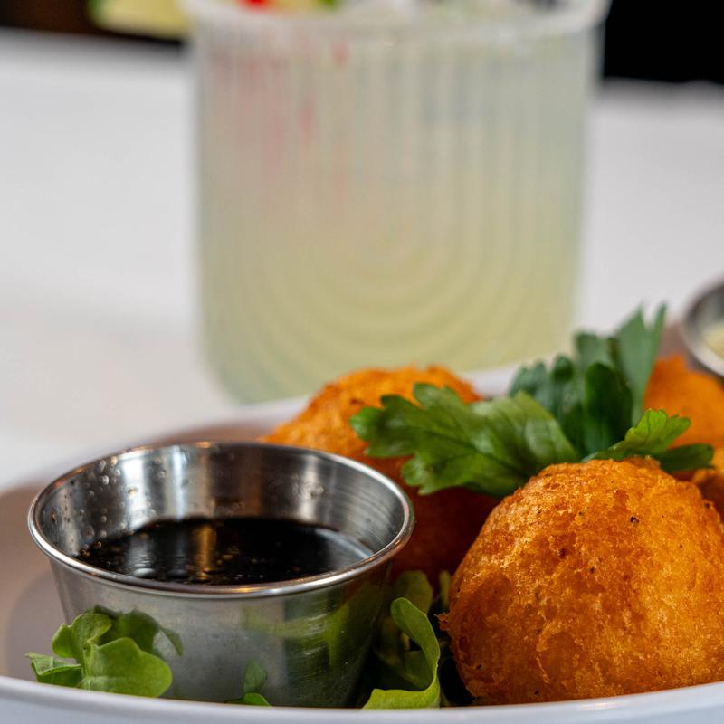 Plantain balls filled with your choice of filling. Served with our homemade spicy mustard or marinara sauce | Cheese, Ham/Cheese, Cubano-Pork Shoulder (Pernil)/Ham/Cheese