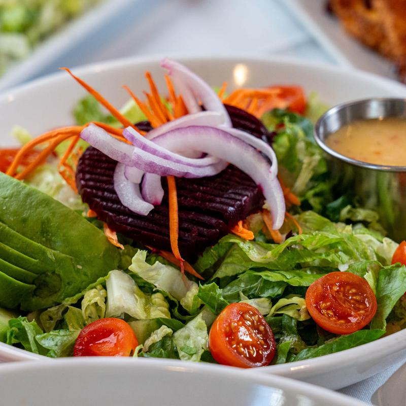 Lettuces, cucumbers, tomatoes, onions, avocado, carrots and beats with your choice of dressing: Italian, Ranch or homemade Lemon